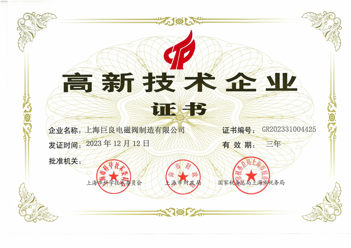 高新技术企业证书-电磁阀