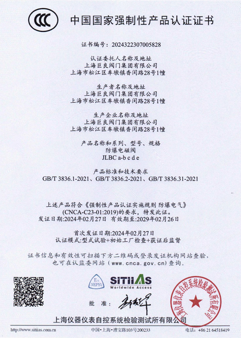 CCC认证-JLBC-电磁阀