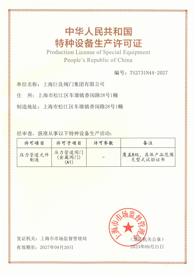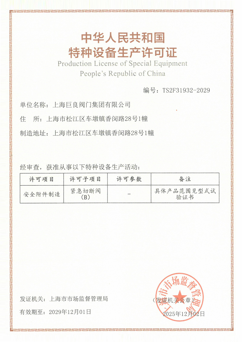 TS-紧急切断阀生产许可证