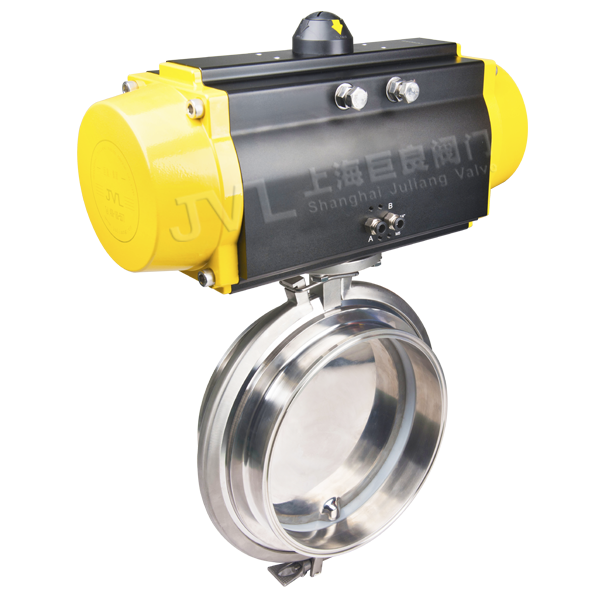JL600-D3气动卫生级蝶阀采用标准电子抛光,光滑表面确保清洁,无介质积存区域,不会产生潜在的污染。快速拆装阀,使阀门打开和维修快捷容易,使过程停机时间缩短。广泛应用于如食品、制药、化妆品、洁净蒸汽、酒类、饮料、生化工业过程控制场合。具有结构紧凑、装拆方便等优点。